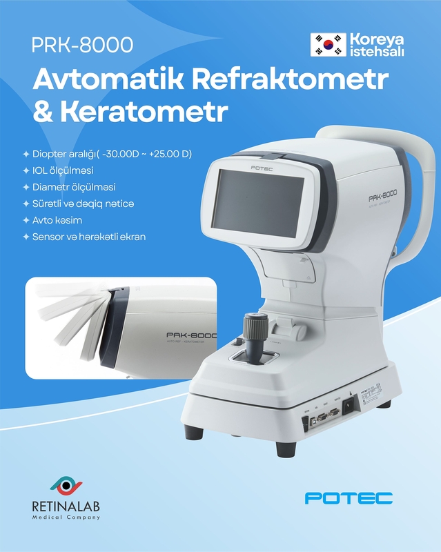 POTEC PRK-8000, müasir oftalmoloji cihazlardan biridir və gözün refraksiyasını və diametrini ölçmək üçün istifadə olunur. Cihaz, 1992-ci ildə Koreyada qurulmuş və bu sahədə qabaqcıl şirkətlərdən biri olan ©️ POTEC tərəfindən hazırlanmışdır. Cihazın üstün xüsusiyyətlərdən biri, ölçmələrin sürətli şəkildə həyata keçirilməsidir. Həmçinin, hərəkətli və sensorlu ekranı vasitəsi ilə cihazın hərəkət etməsi istifadəçiyə rahatlıq təmin edir.