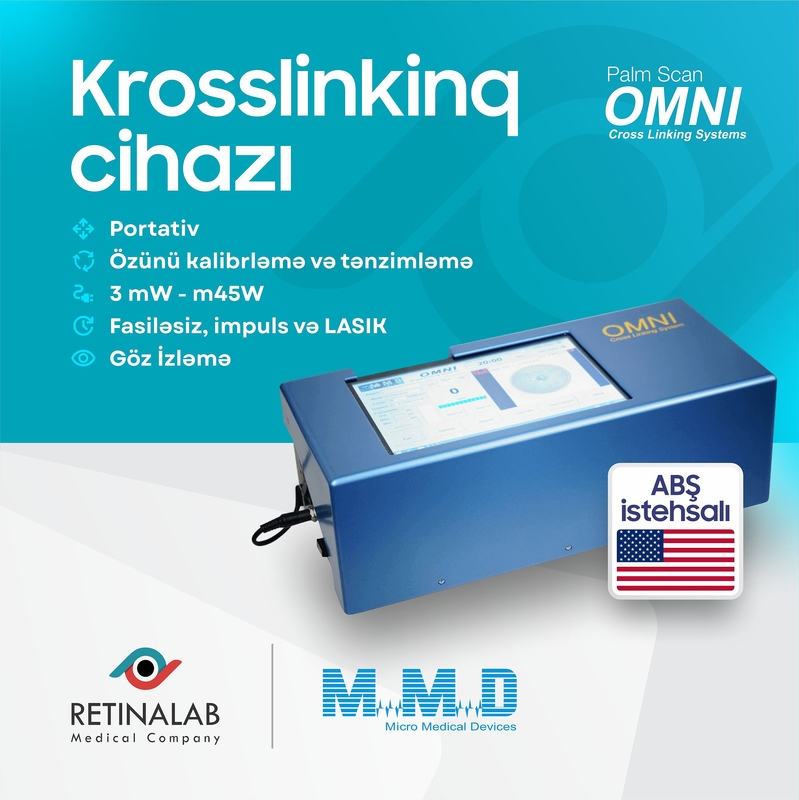 Omni Corneal Cross Linking cihazı, buynuz qişanın möhkəmləndirilməsi üçün istifadə olunan bir sistemdir. Bu cihaz korneal krosslinkinq prosedurunda *365 nm dalğa uzunluğunda UB işıq və riboflavin* fotosensitizeri ilə buynuz qişada kollagen lifləri arasında yeni kimyəvi bağların yaranmasını təmin edir. Prosedurun məqsədi buynuz qişanın nazilməsi və keratokonus kimi xəstəliklərin irəliləməsini dayandırmaqdır.