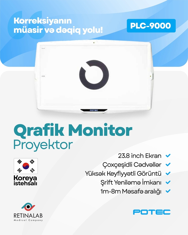 Məhsul xüsusiyyətləri: Ekran: 23.8 inch Məsafə aralığı: 1-8 m Cədvəl növləri: Landolt, İngilis, Rəqəm, Snellen, Uşaq, Xüsusi, Rəng Korluğu (Üfüqi, Şaquli, Tək) Cədvəl sayı: 80 Şrift Yeniləmə İmkanı